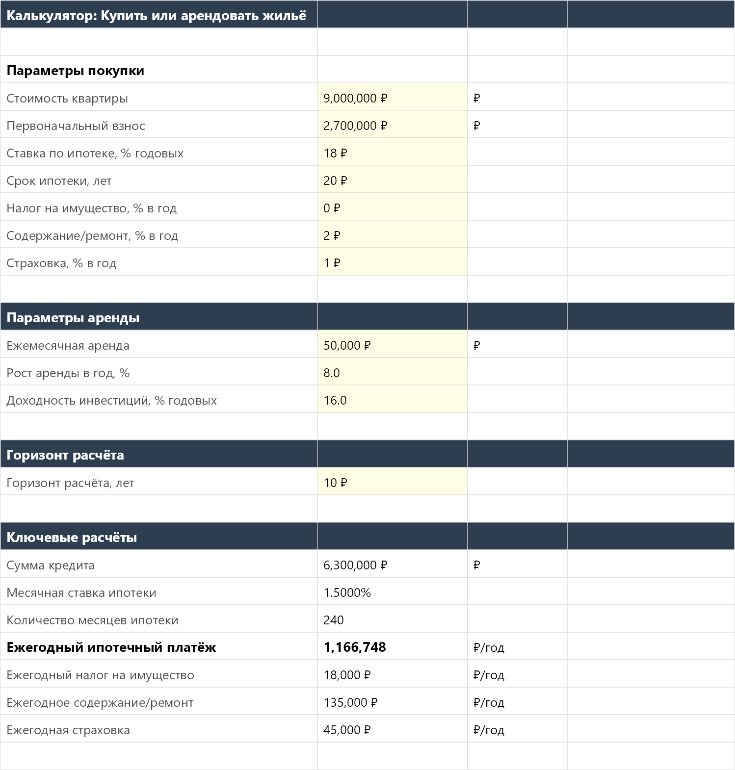 Купить или арендовать жильё — калькулятор в Excel