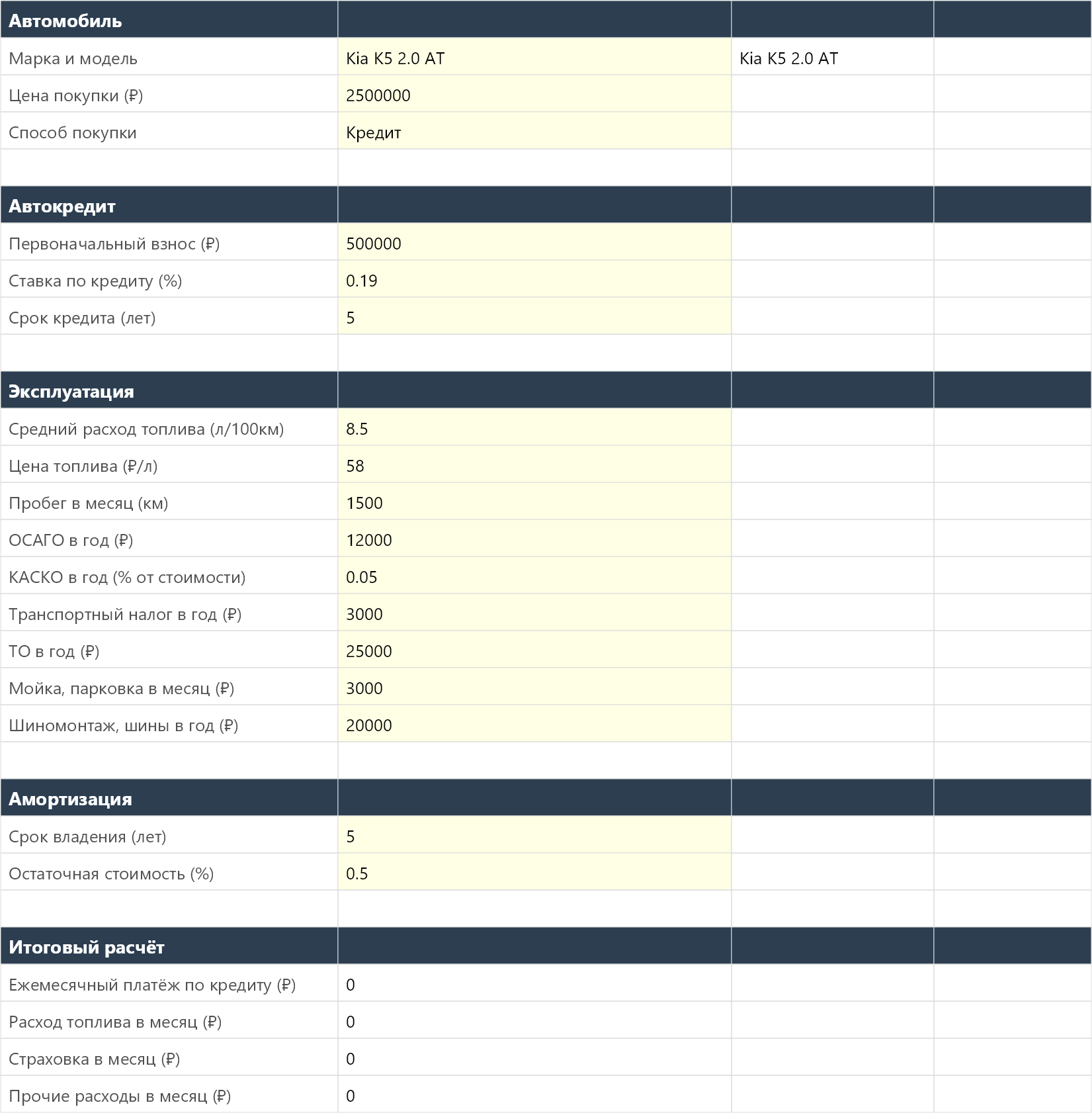Полная стоимость владения автомобилем — калькулятор в Excel